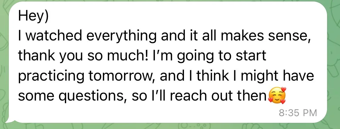 ✨ This short preview gives you a real feel for the course, so you know exactly what you’re investing in.